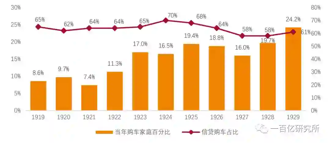 消费信贷的发展催动越来越多的汽车消费以分期付款的形式发生,信贷购车占比过半,此后消费信贷也被逐步推广到收音机、洗衣机、珠宝、服装等商品。