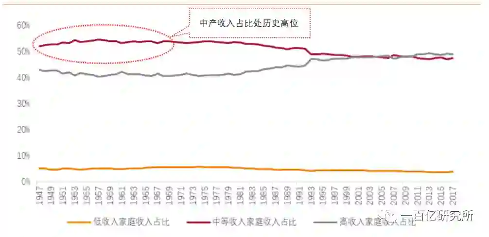 1946-1970 年,中等收入群体所拥有的社会财富达到战后至今的最高水平,居民消费水平普遍得到提升。