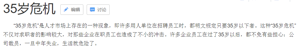 百度百科收录的“35岁危机”词条)