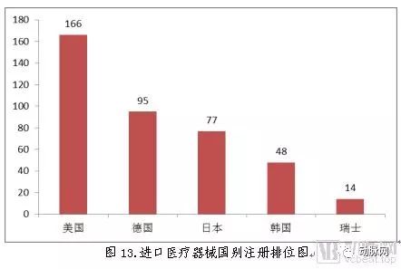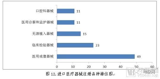 注册数量前五位的进口医疗器械,主要是:医用成像器械,临床检验器械,无源植入器械,医用诊察和监护器械,口腔科器械。