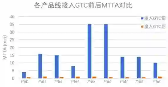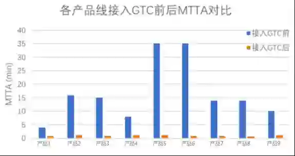 图4. 各产品线接入GTC前后MTTA对比