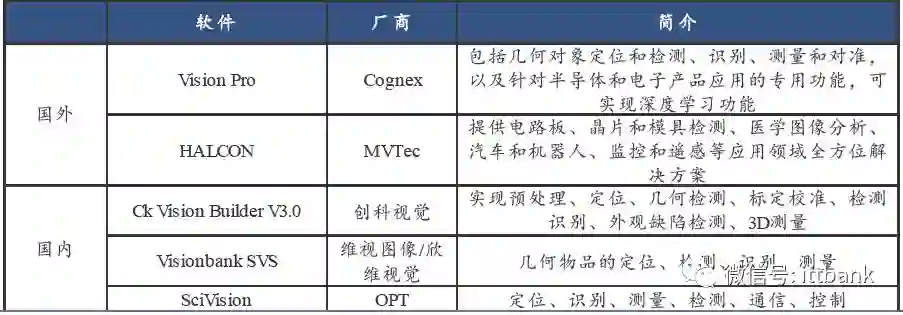 从技术壁垒来看,1)软件是主要壁垒,底层算法库是核心。目前是外资企业垄断,做得好例如康耐视以及MVTec,主要是靠国外几十年的自动化进程培养起来的;国内自动化进程时间不长,软件算法还多处于研发阶段,应用做得好的不多,2)应用层面的技术也非常关键,主要是要掌握不同应用环境的Know-How,做出适应性的产品。