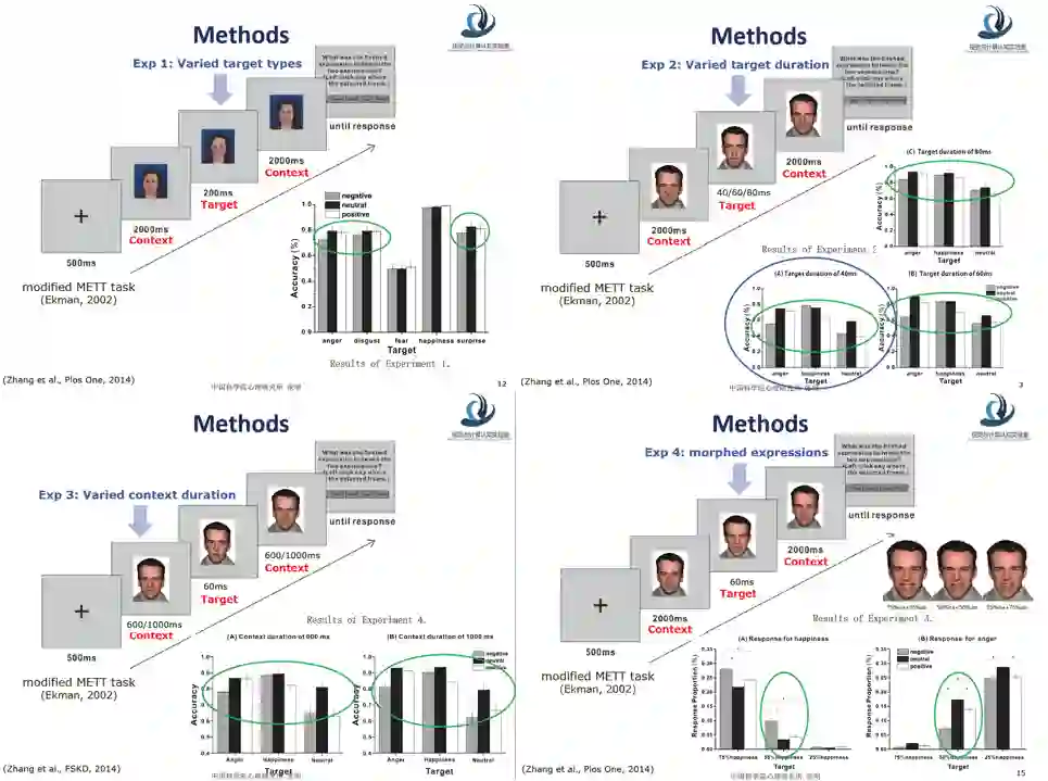 其中实验范式如下图所示:通过改进METT(微表情训练工具)范式,要求实验参与者识别在两个相同情感面孔之间快速呈现的目标微表情,通过一系列实验考查情绪背景对微表情识别的影响。