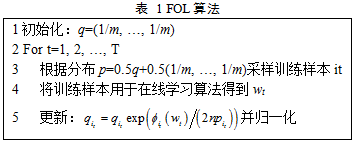 其中。在总共T轮的训练中,在每一迭代轮t中,选取训练样本it ~ pt用于当前的训练,并根据当前迭代轮的损失调整训练集中的样本分布。具体FOL算法为: