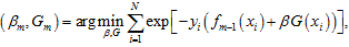 AdaBoost的策略是通过组合弱学习器的方式,最小化经验风险。假设有m个弱分类器,AdaBoost组合这m个弱分类器:
