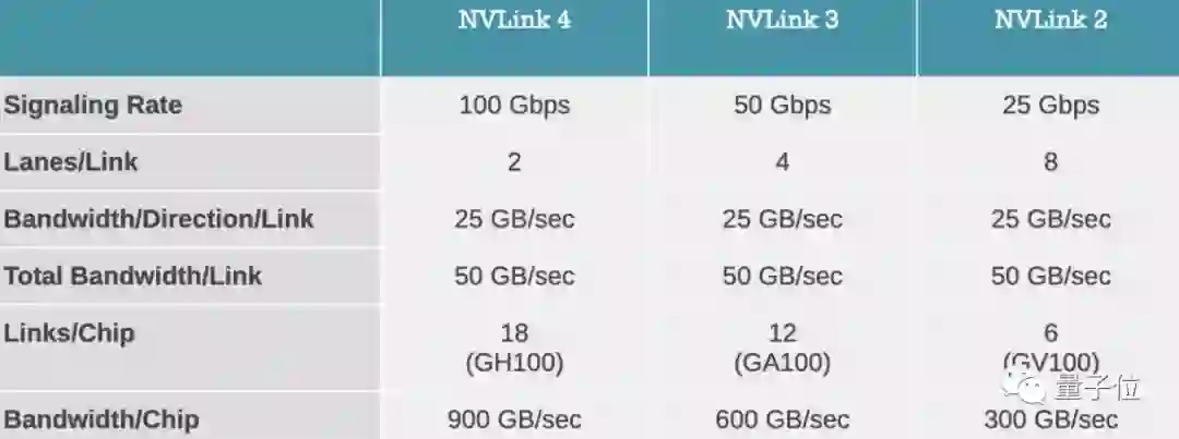 各GPU之间的连接速度也变得更快,900GB/s的速度接近上一代的1.5倍。