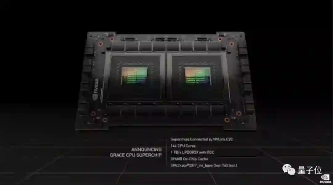 没想到,老黄从库克那里学来一手1+1=2,两块CPU“粘”在一起组成了CPU超级芯片——Grace CPU Superchip。