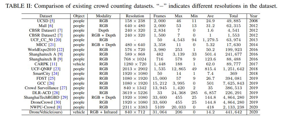 近日,天津大学的学者发布了论文Drone Based RGBT Vehicle Detection and Counting: A Challenge,公布了他们收集、标注的大型无人机航拍车辆数据集DroneVehicle,相信将会极大的方便该领域的研究开发者。