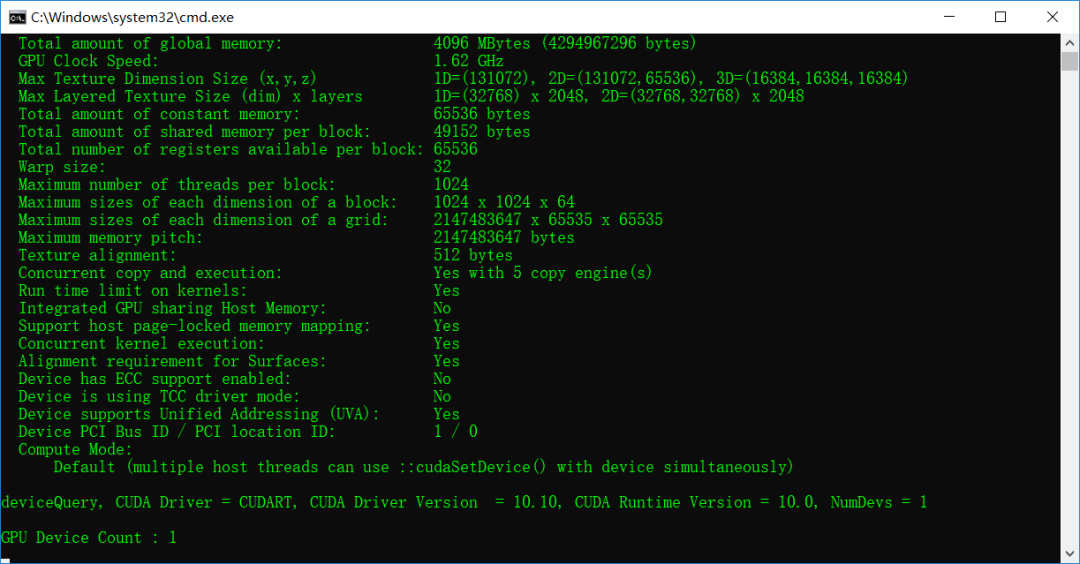 OpenCV支持传统的图像处理的CUDA加速,从OpenCV4.2开始支持深度神经网络的CUDA加速,因此在OpenCV4.4中,CUDA是既可以加速传统的图像处理,特征与对象检测;又可以支持深度神经网络的CUDA加速。下面的代码首先查询相关GPU: