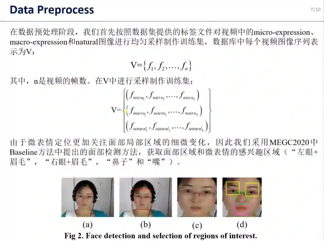 其中,在数据预处理的阶段,潘航对宏表情、微表情和中性脸在数据集中进行了均匀采样,并在人脸裁剪的基础上在人脸上选择了四个针对微表情的兴趣区域。