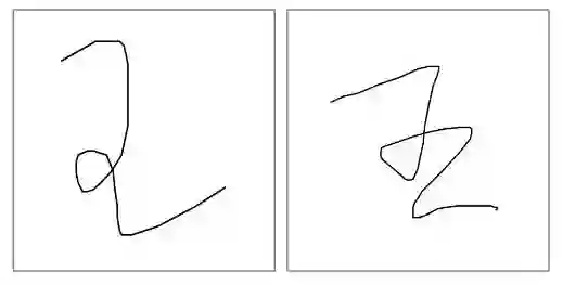 反过来说,有时候不同的字也会看起来很相似,造成迷惑。以下U+738(王)、U+4E94(五)的数据就是明显的例子。值得注意的是,要能够区分潦草的变化就一定需要足够的训练数据。