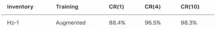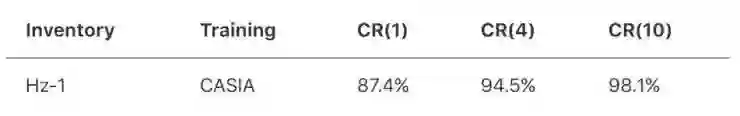 作为基准线,苹果的研究人员们在CASIA benchmark任务中评估了这个CNN模型。虽然这个任务只涵盖了汉字中级别1的字符,但是在以往文献中有丰富的识别测试准确率结果。他们使用了同样的基于 CASIA-OLHWDB、DB1.0-1.2,分为训练集和测试集,训练样本的数量大约为100万个。
