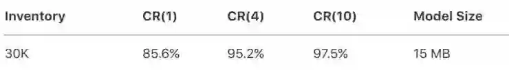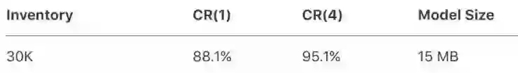 之前有研究中首选准确率达到93%,前10位准确率达到98%。相比之下,虽然苹果自己的前10位准确率和其它研究中的在同一水平上,但第一位准确率要稍低。在苹果看来,这是为了达到更高的前4位准确率作出的平衡;而且可能更重要的是,这个模型的大小(1MB)比之前任何类似的系统都要小。