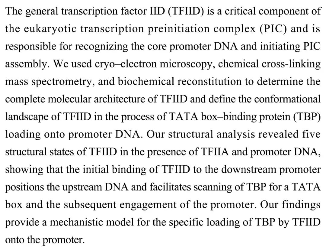 人类TFIID的结构和TBP加载到启动子DNA上的机制