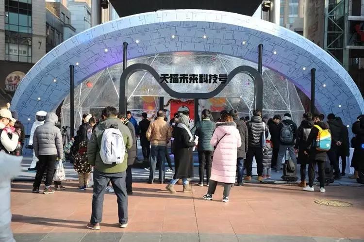 在这个占地面积近 260 多平米人的 UFO 造型的天猫无人店里,没有真人导购员,而是由天猫精灵充当导购员。现场显示了家庭清洁、烹饪、情感陪伴、教育陪伴等类型主流机器人,不少消费者在现场体验后通过扫码在天猫旗舰店还进行了购买。