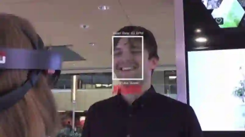 HoloLens的实验项目Cardiolens展示,戴上HoloLens就可以一眼看到你眼前的人的心跳、以及其他生理特征。