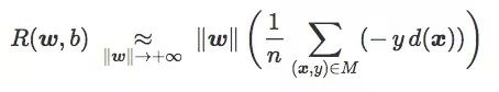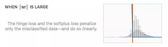 换句话说,当‖w‖足够大时,最小化hinge loss和softplus loss的期望风险就等于最小化误差距离,也就是最小化训练集上的错误率。