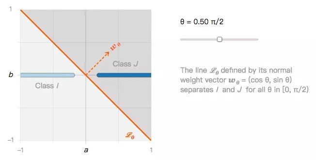 它们可以用无数个线性分类器进行分类,比如下图的Lθ: