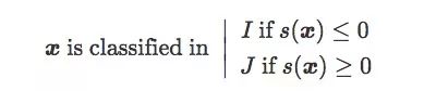 假设x是I中的一张图像,它距离J类图像的最近距离是它到分类边界的投影,也就是x到Lθ的垂直距离: