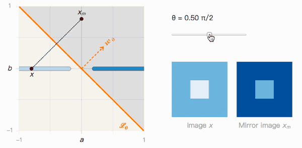让我们回到之前的玩具问题。有了图像x和它的镜像图像xm,我们可以据此构建一个包含θ的函数。
