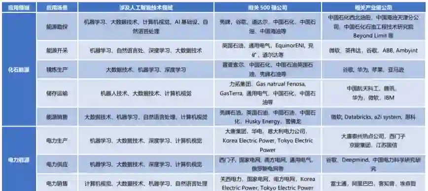 其他周边场景:由于能源针对人工智能应用的场景极为复杂,故本报告并未囊括如新能源,清洁能源等相关业内热门场景。