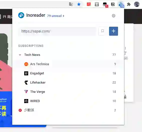 你可以在 Chrome 网上应用商店免费获取 Inoreader。关注少数派,在后台回复「扩展」即可获得下载链接。