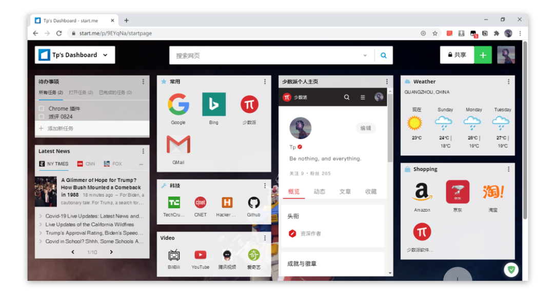 Start.me 是一款新标签页增强扩展,它可以将新标签页变成你的专属 Dashboard。