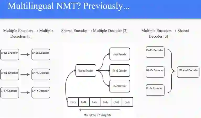 对 种语言来讲,就需要 对encoder-decoder。这样的系统臃肿不堪,过度复杂,也无法应对Zero-Shot Translation问题(缺乏某两个语言之间的平行语料)。