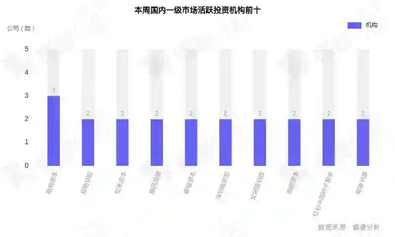 从机构投资活跃度来看,高榕资本(3个),启明创投(2个),松禾资本(2个),腾讯投资(2个),泰福资本(2个)等在本周创投市场中较为活跃。