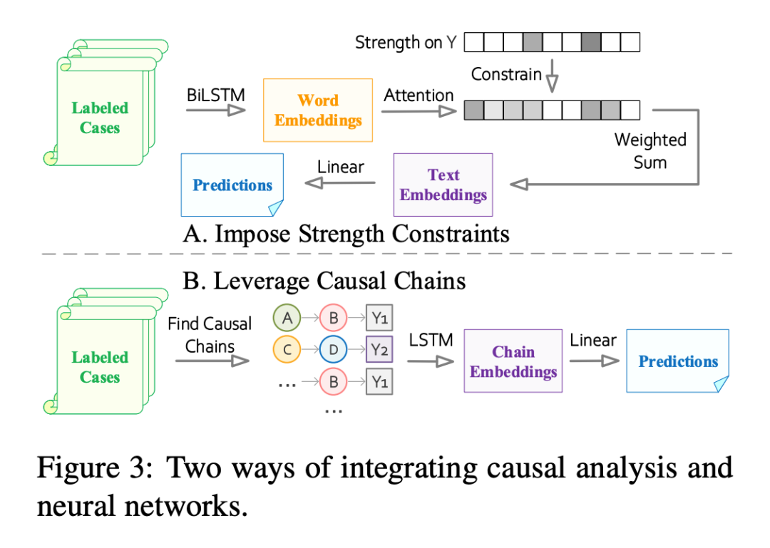 文献通过两种方式将因果发现的结果应用至神经网络,第一种是将因果强度限制 Attention 的权重,第二种将有向无环图拆解成若干因果链并作为 LSTM 的输入。