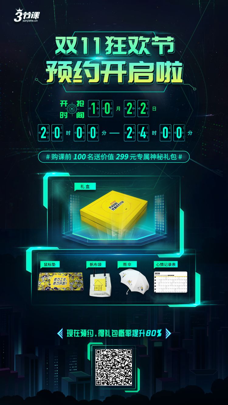 你可能知道的是,三节课每年在11月左右都会搞一次大型活动。在既往活动中,会有诸如直播、秒杀、折上折等福利,力度堪比送钱。每每这时,就是大家对之前心仪已久的课程下手的时刻。那今年,自然也不例外!