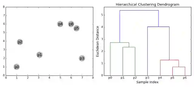 重复步骤2,直到我们到达树根,即最后只有一个包含所有数据点的聚类。通过这种方式,我们可以选择要几个聚类,以及什么时候停止聚类。