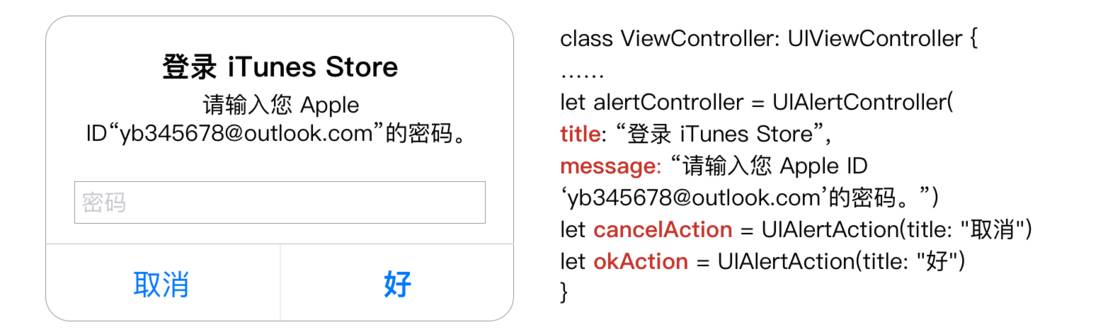 此外,这类弹窗采用的是 iOS 统一设计规范中的 UIKit - UIAlertController。一直以来,Apple 都鼓励开发者调用 UIKit 来使 iOS 应用看起来有统一的设计,而开发者只需要将 UIAlertController 的 title、message 和 Action 稍作修改,就能实现真假难辨的钓鱼弹窗。这是一段非常简单的代码,只要是位开发者都知道怎么写,所以问题就在于开发者有没有做坏事的心思。