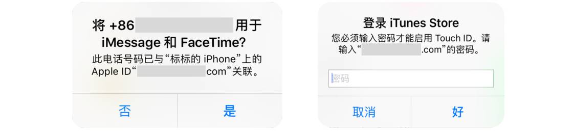同样,不会消失的系统弹窗还有将电话号码用于 iMessage 和 FaceTime 时的弹窗、开启使用 Touch ID 下载应用时的弹窗等。这是因为这些弹窗都是由 iOS 系统发出的,脱离于任何一个应用之外。