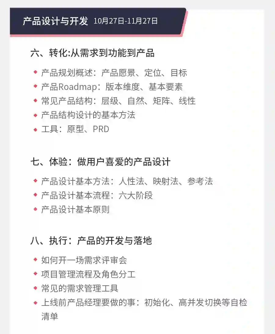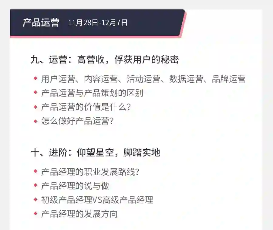 无论你是对产品岗感兴趣但缺乏系统知识的还是想要转岗入行但缺乏坚实基础的产品新人,这门课程都能很好地帮助你。