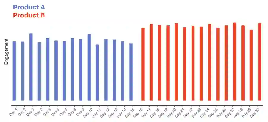 如果我们将一种体验推给所有人,并简单地在改变前后衡量单一指标,那么这两个时间段之间可能存在相关差异,从而阻止我们做出因果推论。也许它是一部很受欢迎的新剧集。也许它是一种新的产品合作关系,可以让更多会员享受到奈飞的乐趣。总有一些事情是我们不知道的。