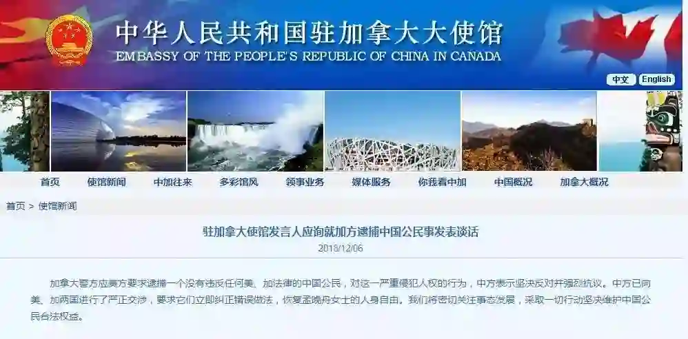 中美贸易战一波未平一波又起。早晨,加拿大《环球邮报》爆出华为创始人任正非女儿孟晚舟在加拿大被捕的消息,华为也证实“转机时,被加拿大当局代表美国政府暂时扣留”,中国驻加使馆发表声明,要求美加立刻恢复孟晚舟人身自由。
