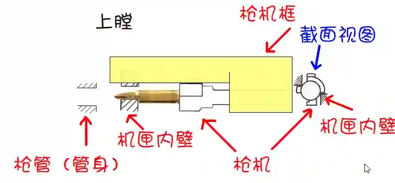 击发、发射和保险机构合称为击发机,由击锤和击锤簧组成,有了它就可以打爆击发子弹了。