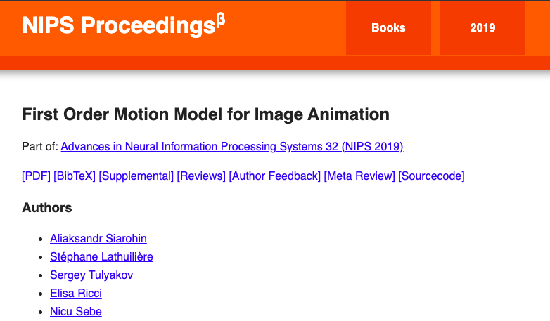 http://papers.nips.cc/paper/8935-first-order-motion-model-for-image-animation