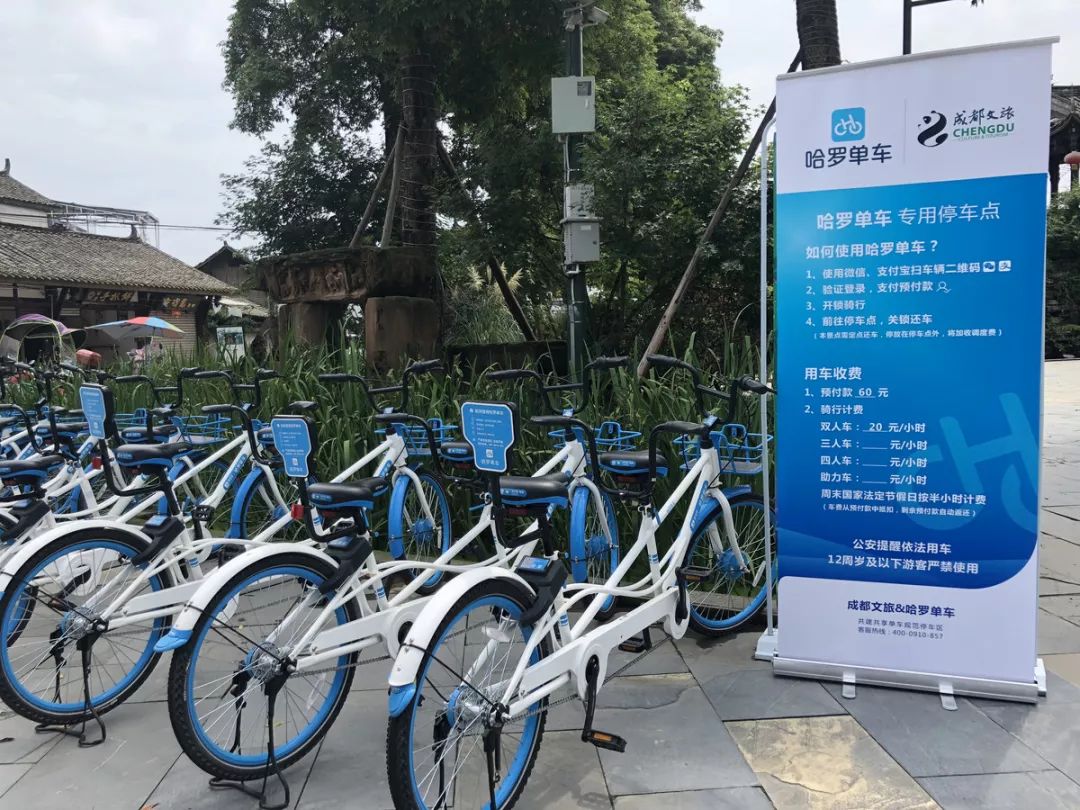 在位于成都辖区内的5A景区乐平古镇,哈罗投放了数百辆供双人骑行的景区车,收费为20元/小时。据哈罗景区车华西南大区负责人黄琛培介绍,接下来还会推出定制的三人车和四人车,前者收费预计为40元/辆/小时,后者为60元/辆/小时。