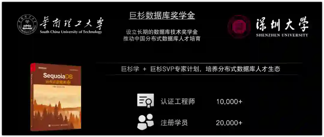 在高校协同方面,巨杉数据库先后在华南理工大学、深圳大学设立长期的「巨杉数据库奖学金」,推动中国分布式数据库人才培育。在产业生态方面,巨杉积极推动行业标准、团标及生态联盟的建设,致力于建设一个开放的基础软硬件企业级生态,特别是已经与鲲鹏、飞腾、海光、麒麟、统信等厂商的 150 多款信创上下游产品完成互认证。