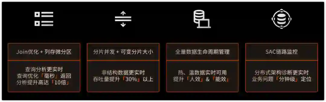 部署架构方面,支持多配置硬件的混合部署,针对高并发数据与低并发数据,做到按需调度;面向横跨结构化、非结构化数据,提供一体化的开发及管理能力,提升人效及能效,在成本可控的前提下,实现全量数据实时可用。
