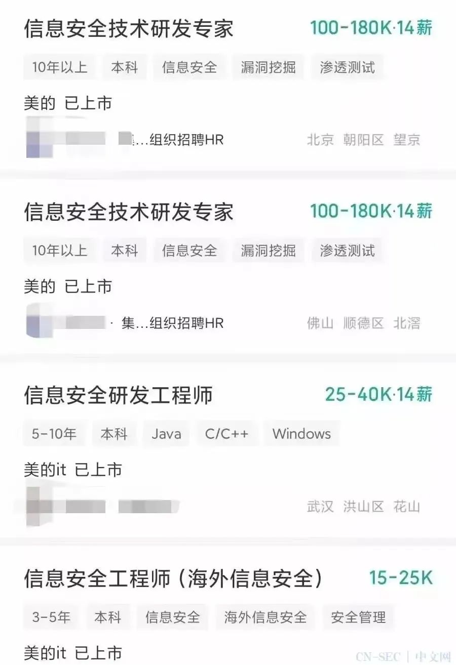 但是事发当晚,在招聘软件上却发现了美的的相关招聘信息,美的连夜以 10 万~18 万天价月薪紧急招聘信息安全技术专家。