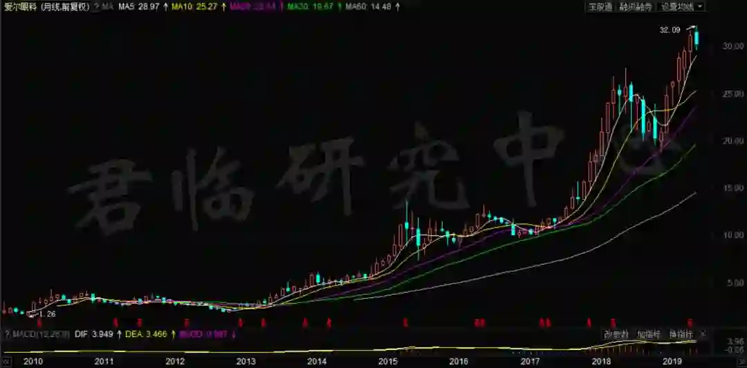 2017年12月20日,君临发表过一篇关于爱尔眼科的研究文章,标题是《强到摆脱产业周期,这家公司永远18岁》。