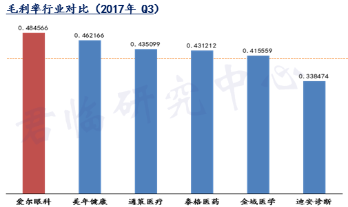 最后我们看一下医疗服务行业的几家公司毛利率对比: