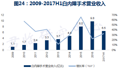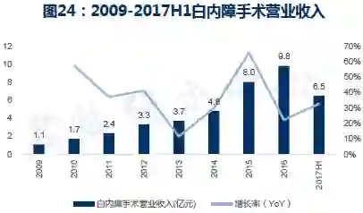 参照发达国家的手术率水平(CSR 8000例/百万人/年),我国白内障病种的潜在市场,可以达到现有市场规模的6倍之多。