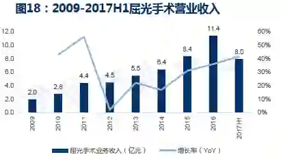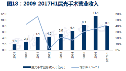 正是这种低渗透率和巨大潜力,让爱尔的屈光手术营收保持了很多年的快速增长,并且离天花板还有很远的距离。