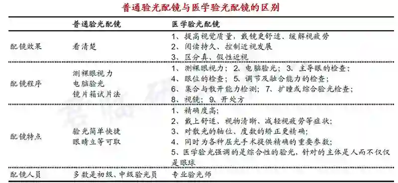 也就是俗称的验光配镜,这块业务门槛相对较低,传统上大多由街边的眼镜店来提供相关服务。