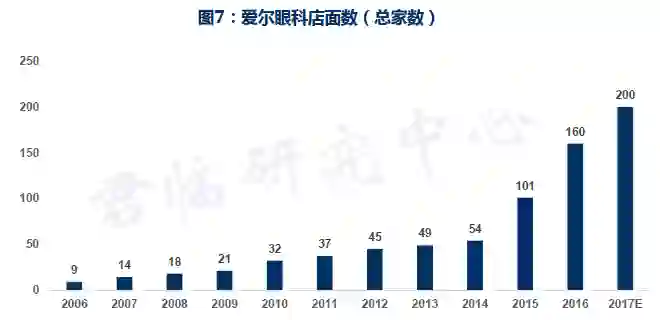 2009-2013年这段时间,爱尔平均每年新开设门店数仅为6家,并购基金设立之后,2014-2016年新开门店数年均达34家。