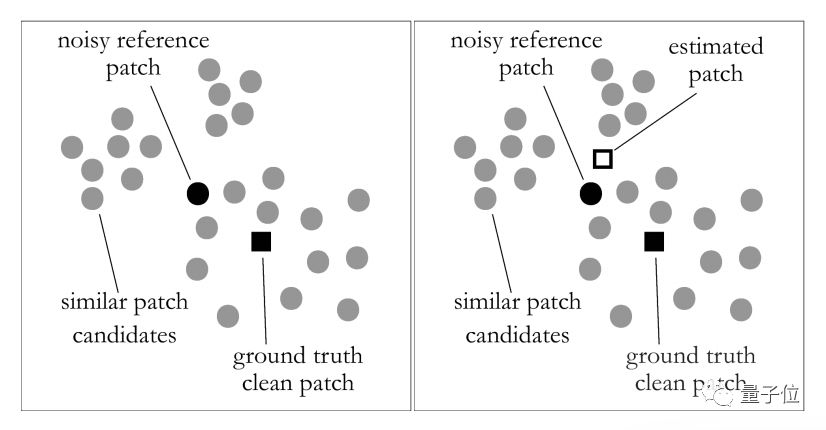 好的相似补丁应该近似无噪声版本的参考补丁,研究人员假设,优质类似补丁的分布近似高斯函数,而非一定以噪点参考为中心。